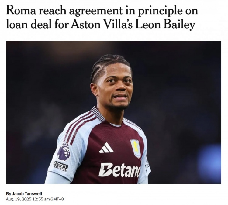 8月19日讯 TA报道,罗马已经与维拉达成原则协议,以租借的形式签下利昂-贝利。